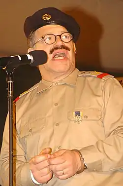 Franken began performing in high school, where he and his longtime friend and writing partner Tom Davis were known for their comedy.[14] The duo first performed on stage at Minneapolis's Brave New Workshop theater specializing in political satire.[15] They soon found themselves in what was described as "a life of near-total failure on the fringes of show business in Los Angeles".[16]