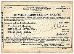 After the war the FCC allocated the first frequencies for personal radio services; the Citizens' Radio Service Frequency Band (1946). Gross formed Gross Electronics Co.[5] to produce two-way communications system to utilize these frequencies, and his company was the first to receive FCC approval in 1948.[2] He sold more than 100 thousand units of his system, mostly to farmers and the U.S. Coast Guard.[2]