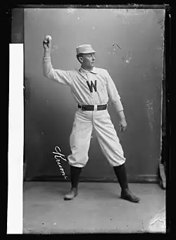 ![]() Pitcher Al Krumm wearing a Washington Senators baseball outfit | |