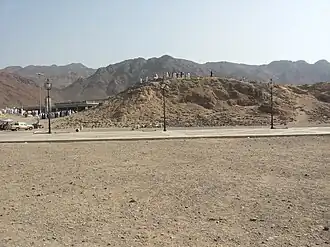 Al Romat Mountain, or Aynin Mountain, is a small mountain adjacent to Mount Uhud, about three kilometers north of the Prophet's Mosque near Medina. It is the mountain where Muhammad, in the Battle of Uhud, stationed fifty archers to protect the Muslims' rear from the infiltration of the polytheists.[1] The archers disobeyed his orders, thinking that the battle had finished. The polytheists attacked the Muslims, and killed a large number of them.