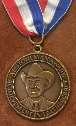 The Al Stohlman Award for Achievement in Leathercraft honors the accomplishments of individual leather workers worldwide for their continued dedication and exemplary service to leathercraft.[1][2] The criteria for nominations are someone who has demonstrated continued devotion to the advancement of leathercraft,[3] following the example of Al Stohlman, who is most well-known for publishing over 40 books, creating numerous pattern packs, and innovating many new tools for leatherworking.[4][5]