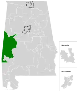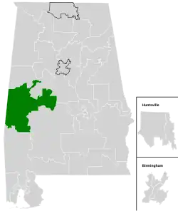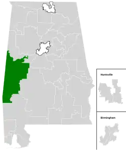 Greene, Sumter, portions of Choctaw, Clarke, Hale, Marengo, Pickens, Tuscaloosa