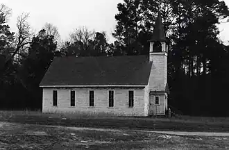 The church was founded in 1849 by settlers from Shelby County, Alabama who built a log building. The present church was built in 1895, and features a central office tower with an open belfry. As of 1995, the tower leaned a bit to the right as one faces the church. It has five windows on each side, with four-over-four glass, and a small two-over-two window on each side of the first level of the tower.[2]