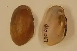 This mussel grows up to 6 centimeters long and is straw-colored or greenish and smooth and shiny.[3]