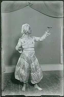 Nielsen frequently conducted extracts from Aladdin to great popular acclaim both in Denmark and abroad. The music was successfully presented at London’s Queen's Hall on 22 June 1923 and at 12 performances of Aladdin at the Deutsches Schauspielhaus in Hamburg in November and December 1929. Nielsen had been scheduled to conduct extracts with the Radio Symphony Orchestra on 1 October 1931 when he suffered a major heart attack. Lying on a hospital bed, he was nevertheless able to listen to the Oriental March, Hindu Dance and Negro Dance on a crystal set before he died the following day.[2] The extracts were published in 1940 as the Aladdin suite. Its seven parts are: