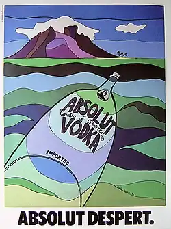 In 1990, Despert moved to New York City to pursue his artistic dream. Shortly after his arrival, his work was noticed by Michel Roux[2] CEO of Crillon Importers and marketer/distributor of Absolut Vodka in the United States. Mr. Roux created the Absolut Artists advertising campaign when he commissioned Andy Warhol to paint the Absolut bottle. Roux added Despert to the Absolut Artists[3] collection. ABSOLUT DESPERT, depicting the bottle floating in the lagoon of Bora Bora, appeared full page in magazines such as Art & Antiques[4] and Connoisseur.[5] Despert's career as an artist was established. Other commissioned artists included Keith Haring, Ed Ruscha and Damien Hirst.