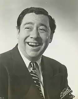 1943 also saw the pairing of Carney with comic Wally Brown as RKO's answer to Abbott and Costello.[18] In addition to their inexpensive starring vehicles, Brown and Carney co-starred in Step Lively, a musical remake of the Marx Brothers film Room Service, featuring George Murphy in the "Groucho" role, with Brown & Carney as his assistants.[19] The comedy team was also featured on a live USO tour arranged by the studio.[20]