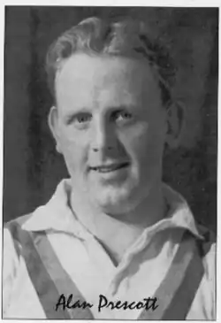 George Alan Prescott (17 June 1927[5] – 20 September 1998) was an English rugby league footballer who played in the 1940s, 1950s and 1960s, and coached in the 1960s. He played initially at wing, and then later at prop, second-row or loose forward. In 404 matches for St Helens. Prescott scored 31 tries for a total of 93 points. He played 14 times for Lancashire, 12 times for England, once for Rugby League XIII, once for British Empire, and made 31 Great Britain appearances (10 as captain).