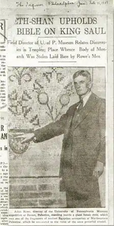 Alan Jenvey Rowe (29 October 1891 – 3 January 1968) was a British archaeologist most famous for his studies on ancient Egypt. Rowe was an Egyptologist and lecturer in Near Eastern Archaeology in Manchester University.[1][2]