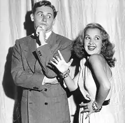 After leaving the service, Young moved to Toronto and resumed his Canadian radio career, where he was discovered by an American agent who brought him to New York City in 1944 to appear on American radio.[1] Young's first American radio appearances were on the Philco Radio Hall of Fame. This led to his own show, The Alan Young Show, NBC's summer replacement for the series The Eddie Cantor Show.[1] He switched to ABC two years later, then returned to NBC.[6]