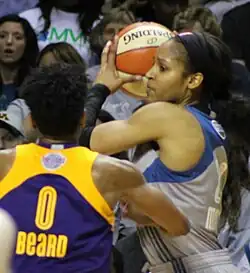 Beard guarding Maya Moore during the 2017 WNBA Finals