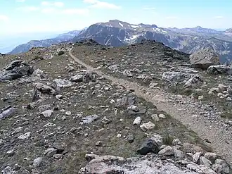 The Alaska Basin Trail is a 7.5 mi (12.1 km) long hiking trail in Grand Teton National Park and Bridger-Teton National Forest in the U.S. state of Wyoming. The trail begins at a junction on the Death Canyon Trail near the Death Canyon Barn and climbs steeply to Static Peak Divide.[1] From the divide, the trail soon splits with a western branch descending into Alaska Basin and the eastern trail (also known as the Alaska Basin Shelf Trail) continuing north to junction with the Teton Crest Trail.[2] There are no camping zones on the trail within Grand Teton National Park, however in National Forest lands within Alaska Basin, camping is permitted anywhere more than 200 ft (61 m) away from lakes, though no open fires are allowed.[3] The Alaska Basin Trail is oftentimes used by climbers attempting to make ascents of Buck Mountain and Veiled Peak.[4]