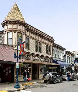 The Alaska Steam Laundry is a historic commercial building at 174 South Franklin Street in Juneau, Alaska. It is a Late Victorian wood-frame structure, with a prominent turret that has a conical roof. Built in 1901, it is a well-preserved element of the transition of Juneau from a mining camp to a more cosmopolitan city (it was named the territorial capital in 1900). It was built by E. R. Jaeger, who envisioned the laundry as a profitable business serving single miners working the nearby gold mines. The laundry facilities were housed on the ground floor, with residences and office space above. The laundry operated here until 1929, when it was moved to new premises in the city, and this building was converted to other commercial uses.[2]