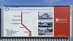 South of the Alaudagasse station, the U1 towards Oberlaa, which until this point ran along the Favoritenstraße, branches off and now runs parallel to the Donauländebahn to the Therme Wien. Here, a double-track turning system was built, which is designed in preparation for a line bifurcation. Thus, the possibility of an extension of the U1 to Rothneusiedl, as had been originally planned, remains.