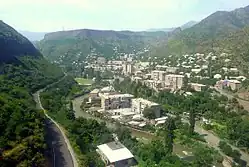 Sanahin native Anastas Mikoyan visited Alaverdi and Sanahin numerous times, most notably in March 1962. Mikoyan frequently advised Soviet Armenian officials on various economic development projects in the Alaverdi region, especially during the Khrushchev Thaw.[5] Following the independence of Armenia in 1991, Alaverdi was included within the newly formed Lori Province, as per the 1995 administrative reforms. The municipal community of Alaverdi includes the nearby rural settlement of Akner as well. Considered one of the leading industrial plants in the region, the Alaverdi copper smelter is currently operated by the ACP company since its privatization in 1997.