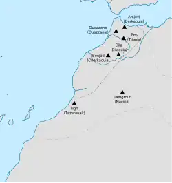 - ^ a b c d e f g h i j k l m n o p q r s t u v w x y z aa ab ac ad ae af ag ah ai aj ak al am an ao ap aq ar Abun-Nasr, Jamil (1987). A history of the Maghrib in the Islamic period. Cambridge: Cambridge University Press. ISBN 0521337674.