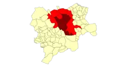 In the early 19th century, in the context of the discussion for the creation of a new province upon territory belonging to New Castile and Murcia, Albacete vied for the capital status of the intended demarcation against nearby Chinchilla.[16] They had a similar population at the time, although Albacete probably had the edge in economic prowess.[17] Chinchilla briefly became head of province during the trienio liberal before the absolutist crackdown of Ferdinand VII, but the definitive 1833 territorial division devised by Javier de Burgos established Albacete as capital of the new province of Albacete.[18]