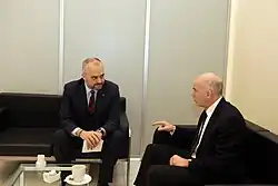 On 14–16 July 2015, Nikos Kotzias, the Greek Foreign Minister, visited Albania as part of his tour of the Western Balkans.[77] During this visit, both countries reaffirmed their close ties, asserting that there were no unresolved issues or taboo subjects between them. They agreed that maritime disputes would be resolved in due time, with both ministers emphasizing the close, strategic, and friendly relations between their peoples. Kotzias acknowledged the Greek National Minority and the Albanians residing in Greece, viewing their shared history and future as a bridge towards sustainable, robust, and productive relations.[78]