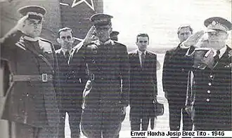 After World War II, Yugoslavia and Albania developed close relations, particularly due to their shared communist ideology and the fight against fascist occupation. Josip Broz Tito, the Yugoslav leader, supported Enver Hoxha and the Communist Party of Albania in resisting Italian and German occupation. However, tensions between the two countries began to emerge shortly after the end of World War II. Different visions of communism and territorial claims were central points of contention. Tito pursued a policy of "Titoism," distancing himself from the Soviet leadership under Stalin, while Hoxha followed a more Stalinist line.[17] These ideological differences led to a rift between the two communist leaders.