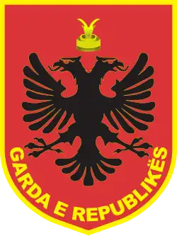 The Republican Guard (Albanian: Garda e Republikës) is a paramilitary government agency of Albania mandated by law to protect high-ranking state officials, including the President of Albania, as well as certain national properties, high-ranking foreign visitors and diplomatic offices. It is mostly subordinate to the Ministry of Internal Affairs, except that the unit responsible for the president's security being under the authority of the president.[2]