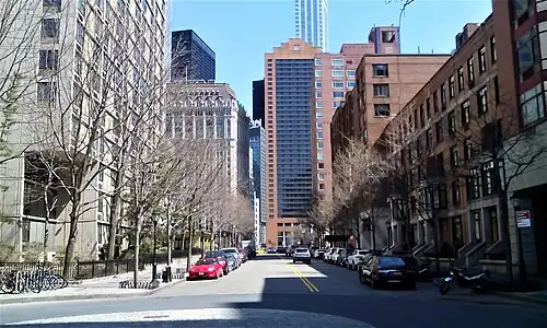 The Deutsche Bank Building was located on the north side of the street, but was heavily damaged in the September 11 attacks in 2001. The Alliance for Downtown New York and the Lower Manhattan Development Corporation in 2014[8] redeveloped part of that site into a new public open space, the Albany Street Plaza.[9]
