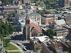 City Hall and its neighborhood seen from Erastus Corning Tower, Albany's tallest building