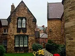 Next to the church is a separately listed minister's cottage, also by Lockwood, in white brick and ashlar and in a similar Gothic style including a projecting gabled porch.[11]