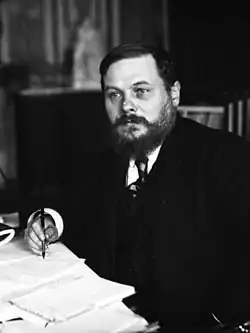 After the declaration of war Métin was mobilized and served as an infantry lieutenant on the eastern front.[1] Métin returned to the chamber, and was general rapporteur for the budget committee. He was again appointed Minister of Labor and Social Security from 29 October 1915 to 12 December 1916 in the cabinet of Aristide Briand. He was Sub-Secretary of State for Finance from 14 December 1916 to 17 August 1917.[1] On 27 July 1917 Denys Cochin submitted his resignation as sub-secretary of state for Foreign Affairs, largely due to frustration over difficulties in achieving a full blockade of Germany and her allies.[8] The cabinet accepted Cochin's resignation on 10 August 1917. Metin took his place, holding office until Clemenceau created a blockade ministry under Charles-Célestin Jonnart on 17 November 1917.[9] Métin was then appointed head of the French mission to Australia. His friend André Siegfried was secretary general of the mission from July 1918.[10] Métin died on 16 August 1918 in San Francisco of apoplexy, thought to have been caused by the strain of his work on the mission.[11] He was a knight of the Legion of Honor.[1]