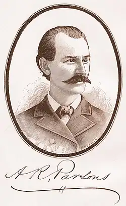 Albert's parents both died when he was a small child, leaving the boy to be raised by his eldest brother, William Henry Parsons (1826–1907), who was married and the proprietor of a small newspaper in Tyler, Texas, the Tyler Telegraph.[4] In the middle of the 1850s, the family moved from Tyler to Johnson County, living on the frontier for three years.[4] Thereafter, they moved again to the Texas Hill Country, establishing a farm in the valley of the Brazos River.[4]
