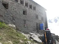The Albert Premier Hut (French: refuge Albert-Ier ), sometimes known as Albert 1er, is located on the Haute Route between Chamonix, France and Zermatt, Switzerland. It is at 2,702 metres (8,865 ft) above sea level. It is a popular hut with day hikers because of the short hike (2 to 3 hours) and views of Chamonix Valley. The hut is usually used less by hikers attempting the entire Haute Route, but is popular as a base for climbers attempting the Aiguille du Chardonnet and the Aiguille du Tour. The hut is named after King Albert I of Belgium, who was a passionate alpinist.