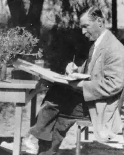In 1903, the Valentiens visited Southern California, staying several months with Anna's brother in Dulzura, a small community southeast of San Diego. During that visit, Valentien produced 135 paintings of California wildflowers, exhibiting the collection at the State Normal School in San Diego (present day San Diego State University).[5] He also brought samples of his work to Miramar Ranch, the home of publishing magnate E.W. Scripps. Ellen Browning Scripps, his sister, noted in her diary, "Mr. Valentien here with a collection of painted wildflowers."[6] Encouraged, Valentien decided to abandon his career as a ceramicist. He later wrote that this was "practically the ending of my pottery career."[7]