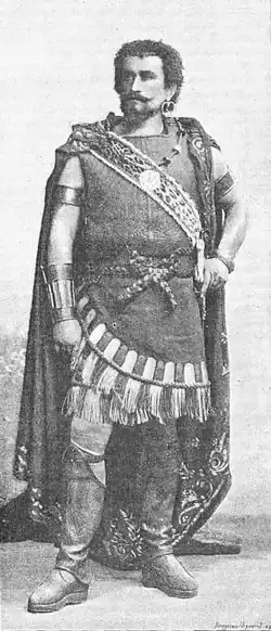 In 1892, Ernest Reyer noticed him and offered him the consecration by giving him a role tailored to his needs at the Paris Opera: Matho in Salammbô. The triumph he obtained allowed him to repeat success after success: Le Cid, Die Walküre, la Damnation de Faust His fame was so great that Verdi offered him the role of Otello that he performed 35 times until May 1895.