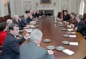 Wohlstetter and his wife, Roberta Wohlstetter, also counseled both Democratic and Republican administrations, including advisers to President John F. Kennedy during the Cuban Missile Crisis in 1962.[30] They received the Presidential Medal of Freedom from Ronald Reagan on November 7, 1985.