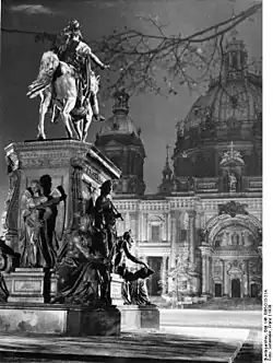 - Equestrian statue of King Friedrich Wilhelm III with several base figures, in the Lustgarten, Berlin. The statue was unveiled on 16 June 1871.[4] It was damaged during World War II and demolished by the German Democratic Republic (GDR) government. Die Allegorie der Wissenschaft (The Allegory of Science) and Clio – the Muse of History statues survived and are located near St. Nicholas' Church, Berlin.