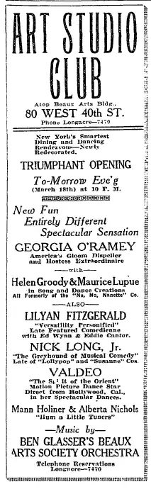 Nichols and Holiner wrote the music for several Broadway shows, including Blackbirds of 1933, and Angela, which starred Jeanette MacDonald.[6]