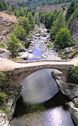 Ponte Altu is a Genovese bridge over the Golo downstream from the D84 highway bridge.