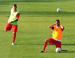 Aquilani scored his first goal for Italy during the 2010 World Cup qualification match against Montenegro on 15 October 2008, a tally he doubled later in the same match.[63] In spite of this, the national team manager Marcello Lippi opted not to include him in the 23-man Italian squad for the 2010 FIFA World Cup.[64]