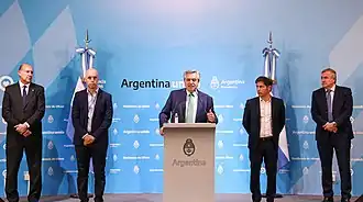 - ^ "Coronavirus. "Seguimos hablando de cuarentena sin que en la Argentina existan cuarentenas" y otras frases de Alberto Fernández". La Nación (in Spanish). Archived from the original on 28 September 2020. Retrieved 4 September 2020.