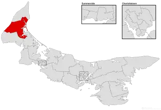 Alberton-Bloomfield (District 26) is a provincial electoral district for the Legislative Assembly of Prince Edward Island, Canada. The district was contested for the first time in the 2019 Prince Edward Island general election. It was created largely from the previous riding Alberton-Roseville, with relatively small adjustments to the former's boundaries.