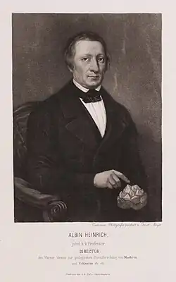 - ^ Melion, Josef Vincenc (1864). Albin Heinrich, jubilirter kk Gymnasial-Professor, Museums-Custos und Director des Werner-Vereins zur geologischen Durchforschung von Mähren und Schlesien: Eine Biographie. Brno: Werner-Verein zur geol. Durchforschung von Mähren und Schlesien.