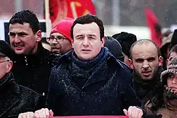 Albin Kurti (Albanian: ['albin 'kuɾti]; born 24 March 1975) is a Kosovo Albanian politician who has been serving as Prime Minister of Kosovo since 2021, having previously held the office from February to June 2020. He came to prominence in 1997 as the vice-president of the University of Pristina student union, and a main organizer of non-violent student demonstrations of 1997 and 1998. Kurti then worked in Adem Demaçi's office when the latter became the political representative of the Kosovo Liberation Army (KLA). Kurti has been a member of the Assembly of the Republic of Kosovo since 2010 in three consecutive legislatures.