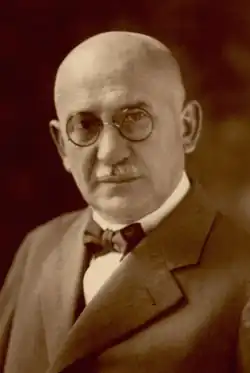 Albin Camillo Müller (13 December 1871 – 2 October 1941), also known as Albinmüller, was a German architect and designer active in Darmstadt.[1] In 1906 he was appointed to the Darmstadt Artists' Colony, where he became the lead architect after Joseph Maria Olbrich's death (1908). In 1907 he was appointed a professor, and from 1907 to 1911 taught Applied Arts. In 1918 along with Kasimir Edschmid, Albinmüller was appointed the President of the newly created Art Council in Darmstadt.[2] In 1926, Müller was appointed architect of the Deutsche Theaterausstellung in Magdeburg. In 1934 he turned to landscape painting and also worked as a writer.
