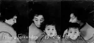Albina Fernandes would live with the pseudonym Rosália for the following 11 years in several clandestine houses across the country, context in which she meets the militant Octávio Pato with whom she starts a relationship. She will be captured by PIDE on 15 December 1961, in the same day in which, in a different place, Octávio Pato will be arrested, and taken with her children to Caxias prison.[2] The couples children, Rui Pato, then 2 years old, and Isabel, then 6 years old and the biological daughter of Antónia Joaquina Monteiro, were held captive with Albina Fernandes in the cell, where Fernandes slept with her knees on the floor while holding on to the wrists of the children while they lied on the bed, so that they wouldn't be taken during the night while she slept. Something that PIDE tried to do shortly after, under the intention of putting the children in an institution under the pretext that Albina Fernandes and Octávio Pato weren't married, in addition to their children not being registered given that they were born in a clandestine situation.[3] Albina Fernandes would refuse to let go of her children's hand during her whole prison stay, her PIDE identification photograph became famous because the PIDE agents were unable to remove Rui Pato from her lap, illustrative of her determination. Fernandes' intransigence in demanding that her children would be given to their grandparents in her presence was successful after 25 days together in the prison cell, having her children given to their paternal grandparents on 10 January 1962.
