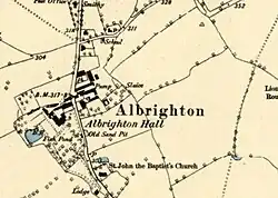 Albrighton Hall near Shrewsbury, Shropshire, is a house which is Grade II* listed on the National Heritage List for England.[1] It was built in 1630[2] for the Ireland family and remained in this family for the next five generations until 1804. It was then the home of several notable people until 1953. In the 1990s it was converted into a hotel.