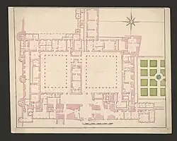 The construction that defines alcázars is the distinctive Iberian practices that can be found in the architectural design.[13] This technique is coined as being Mudéjar in style due to the presence of Morisco and Mudéjar craftsmen throughout both Muslim and Christian rule that had largely contributed to, and had a lasting influence on, the construction of buildings.[14] Features of the alcázars reflected Islamic influence with their geometric design and the inward-looking style emphasizing seclusion and privacy for the occupant.[11] Alcázars of the Iberian Peninsula usually consisted of a complex system of buildings with multiple palaces, halls, and courtyards, all serving a specific function.[15]