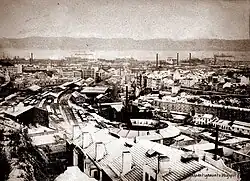 The precarious nature of the economic conditions in the region resulted in several conflicts, including many strikes, conflicts and insurrections, such as the June 1872 event, that came to be known as the "A Pavorosa".[3] Later, the Empresa Industrial Portuguesa, the largest and most modern metallurgical business until the 1920s, operated in Alcântara, which also created dissent and conflict.[3] On various occasions, in 1886, in 1894 and most importantly in 1903 there were strikes, protests and conflicts between the workers and the residents of the region.[3] The 1903 strike began on 7 December to protest the imposition of a foreign director. On 17 December the strikers, numbering hundreds, fought the police in Santo Amaro. Over time, this area has lost the old buildings, the stream and the laundry rooms where women went to do their laundry.[3]