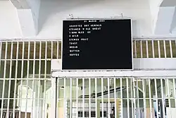 A breakfast menu is still preserved on the hallway board, dated 21 March 1963. The breakfast menu included assorted dry cereals, steamed whole wheat, a scrambled egg, milk, stewed fruit, toast, bread, and butter. Lunch was served in the dining hall at 11:20, followed by a 30-minute rest in the cell, before returning to work at 12:15.[4]