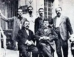 He was also an active member of the Lega Democratica Italiana and the Circolo Socialista Avanti! in the same period, and held several conferences in the city of São Paulo. He also made a number of propaganda trips to the interior of the state, where he helped to found socialist leagues and clubs.[15] On 12 January 1901 Avanti! announced the first efforts to set up a socialist party, and in February, the militants gathered around the newspaper observed with great enthusiasm the strikes that broke out in São Paulo, especially after the strike at the Álvares Penteado textile factory, which spread to other categories.[16] The victory of the strikers at the Penteado textile factory, who were demanding the reinstatement of the old tariff, a reduction in fines and measures to put an end to mistreatment, was seen as a great triumph by the newspaper. De Ambris and Bertolotti, who on behalf of Avanti! acted as intermediaries during the negotiations, went to Brás to tell the strikers about the victory as soon as they heard the news.[17] Avanti! also ran a campaign on behalf of Angelo Longaretti, an Italian peasant who killed the owner of the factory where he worked, Diogo Eugenio Sales, brother of Campos Sales, then President of the Republic of Brazil.[18]