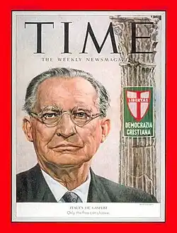 ![]() De Gasperi in 1953 | |||||||||||||||||||||||||||||||||||||||||||