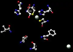 28. ^ Brandt EG, Hellgren M, Brinck T, Bergman T, Edholm O (February 2009). "Molecular dynamics study of zinc binding to cysteines in a peptide mimic of the alcohol dehydrogenase structural zinc site". Physical Chemistry Chemical Physics. 11 (6): 975–83. Bibcode:2009PCCP...11..975B. doi:10.1039/b815482a. PMID 19177216.